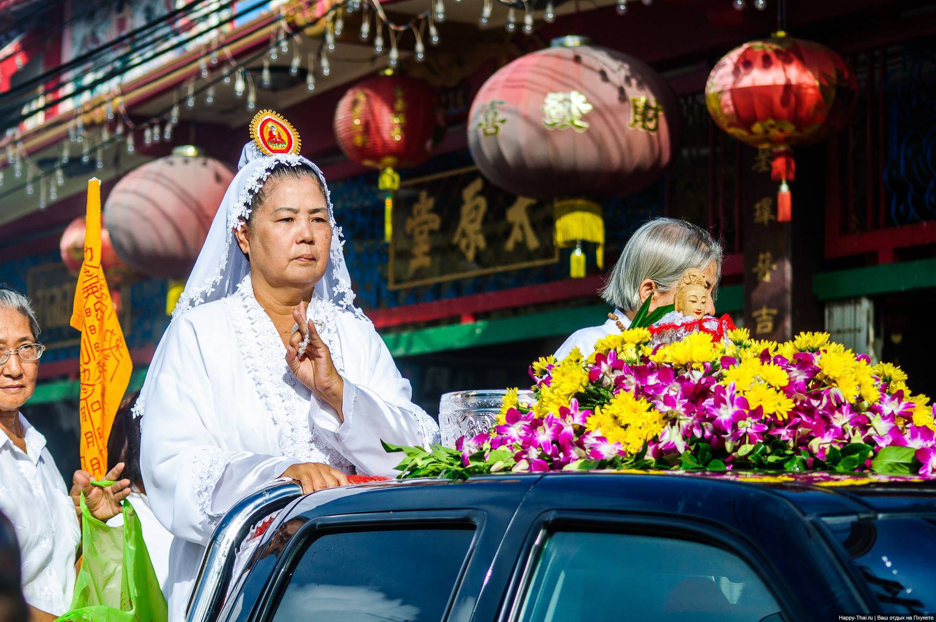 В течение десяти дней вегетарианского фестиваля каждый день в центральной части острова Пхукет проходят различные шествия и другие "представления". Такие шествия являются квинтэссенцией самого фестиваля. Для всех, участвующих в фестивале, самым важным, безусловно, является очищение себя и своей души. Но символом этого очищения становятся как раз такие шествия.